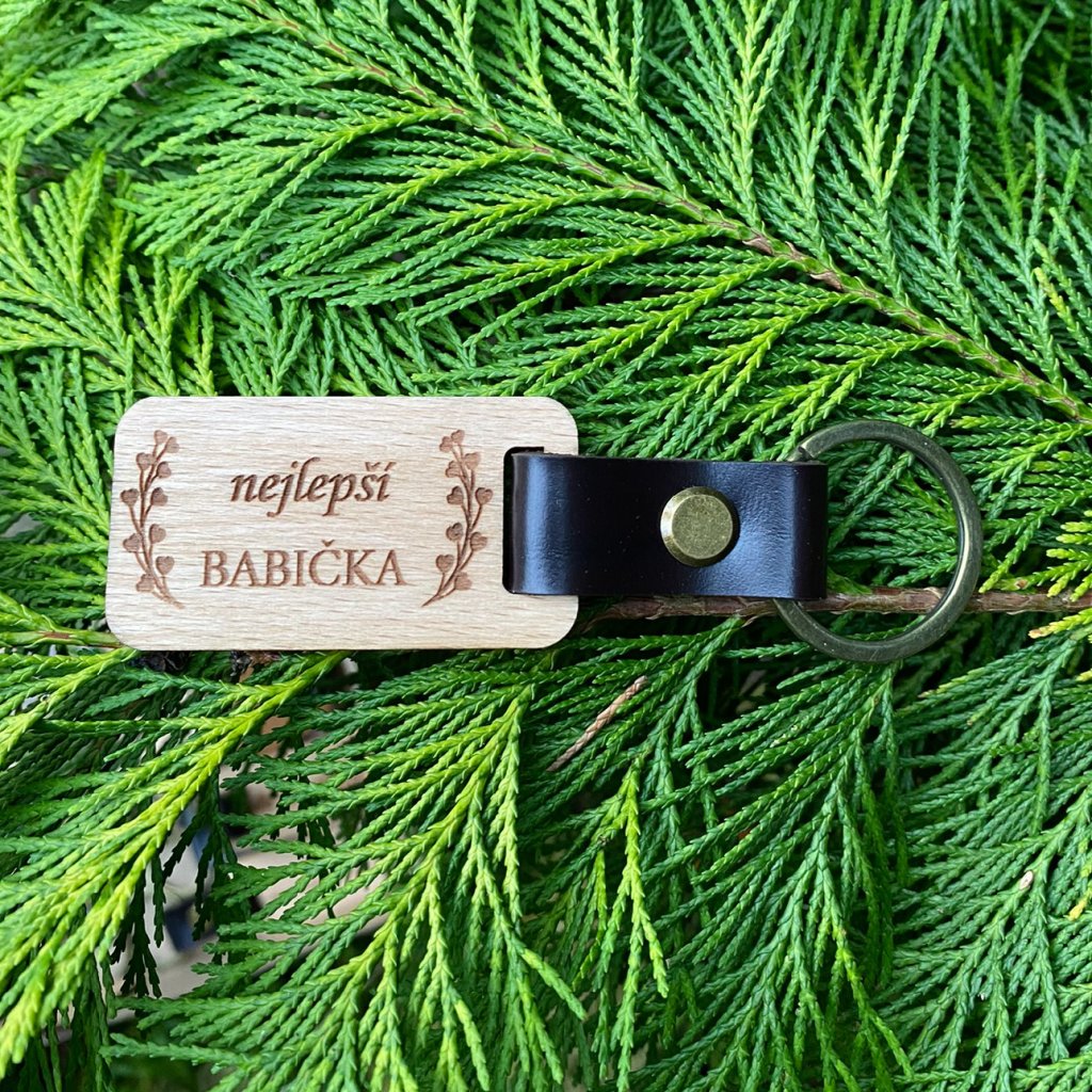 Dřevěná klíčenka s kůží - nejlepší babička 2